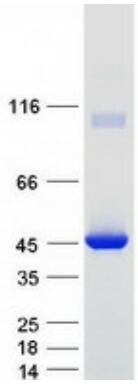 > 80% as determined by SDS-PAGE and Coomassie blue staining. |