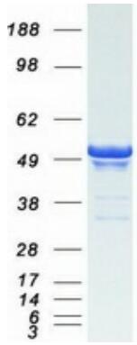 > 80% as determined by SDS-PAGE and Coomassie blue staining. |