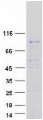 > 80% as determined by SDS-PAGE and Coomassie blue staining. |