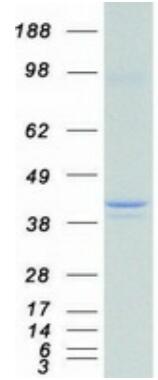> 80% as determined by SDS-PAGE and Coomassie blue staining. |