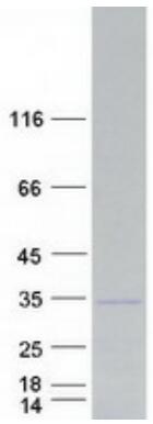 > 80% as determined by SDS-PAGE and Coomassie blue staining. |
