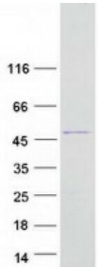 Recombinant protein was captured through anti-DDK affinity column followed by conventional chromatography steps. |