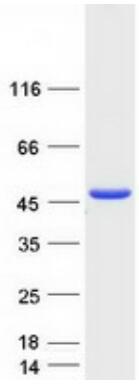 Recombinant protein was captured through anti-DDK affinity column followed by conventional chromatography steps. |