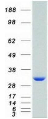 > 80% as determined by SDS-PAGE and Coomassie blue staining. |