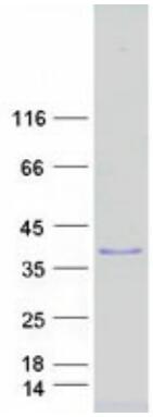 > 80% as determined by SDS-PAGE and Coomassie blue staining. |