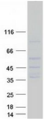 Preparation : | Recombinant protein was captured through anti-DDK affinity column followed by conventional chromatography steps. |