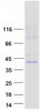 > 80% as determined by SDS-PAGE and Coomassie blue staining. |