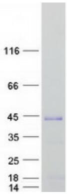 Recombinant protein was captured through anti-DDK affinity column followed by conventional chromatography steps. |