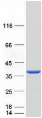 > 80% as determined by SDS-PAGE and Coomassie blue staining. |
