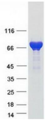 Preparation : | Recombinant protein was captured through anti-DDK affinity column followed by conventional chromatography steps. |