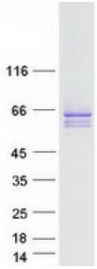 > 80% as determined by SDS-PAGE and Coomassie blue staining. |