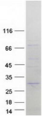 > 80% as determined by SDS-PAGE and Coomassie blue staining. |