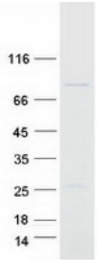 Recombinant protein was captured through anti-DDK affinity column followed by conventional chromatography steps. |