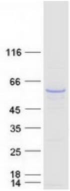 Recombinant protein was captured through anti-DDK affinity column followed by conventional chromatography steps. |