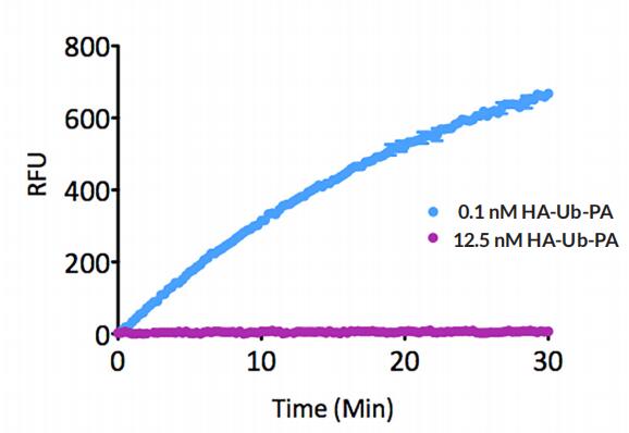 Reaction conditions will need to be optimized for each application. We recommend an initial HA-Ubiquitin-PA concentration of 1-5 μM. |