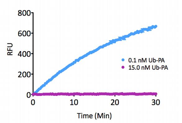 Reaction conditions will need to be optimized for each specific application. We recommend an initial Recombinant Human Ubiquitin Propargylamide concentration of 1-5 μM. |