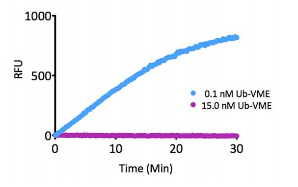 Reaction conditions will need to be optimized for each specific application. We recommend an initial Recombinant Human Ubiquitin Vinyl Methyl Ester concentration of 1-5 μM. |