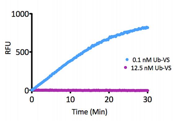 Reaction conditions will need to be optimized for each specific application. We recommend an initial Recombinant Human Ubiquitin Vinyl Sulfone concentration of 1-5 μM. |