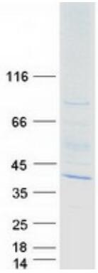 Recombinant protein was captured through anti-DDK affinity column followed by conventional chromatography steps. |