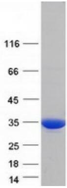 > 80% as determined by SDS-PAGE and Coomassie blue staining. |