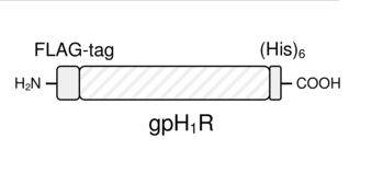 The histamine H1-receptor (H1R) belongs to the superfamily of seven transmembrane-domain (7TM), G-protein-coupled receptors (GPCRs). The endogenous agonist for the H1R is histamine which is both neurotransmitter and autacoid. The H1R couples to Gq-proteins to activate phospholipase C. Numerous agonists and antagonists are known. H1R agonists are divided into three classes, i.e. small agonists derived from histamine, histamine derivatives with bulkier aromatic substituents at position 2 of the imidazole ring and histaprofidens. H1R antagonists are commonly divided into sedating (first-generation) and nonsedating (second-generation) antagonists. Today, especially the second-generation H1R antagonists are of great importance for the treatment of allergic diseases. Guanidines derived from arpromidine are dual H2R agonists/H1R antagonists. Small H1R agonists exhibit similar effects at human H1R (hH1R) and guinea pig H1R (gpH1R), whereas bulkier 2- phenylhistamines and histaprodifens are up to {tab??}10-fold more potent at gpH1R than at hH1R. Several firstgeneration H1R antagonists are {tab??}2-fold, and arpromidine-type H1R antagonists up to {tab??}10-fold more potent at gpH1R than at hH1R. The regulator of G-protein signaling 4 (RGS4) efficiently enhances steady-state GTP hydrolysis stimulated by H1R, thus providing a very sensitive model system for the pharmacological analysis of the H1R directly at the G-protein level. gpH1R + RGS4 were prepared from Sf9 cells coinfected with gpH1R- and RGS4-encoding baculoviruses. The protein contains a N-terminal FLAG-tag® and a C-terminal hexahistidine (His6)-tag for immunological detection and protection against proteolysis. |