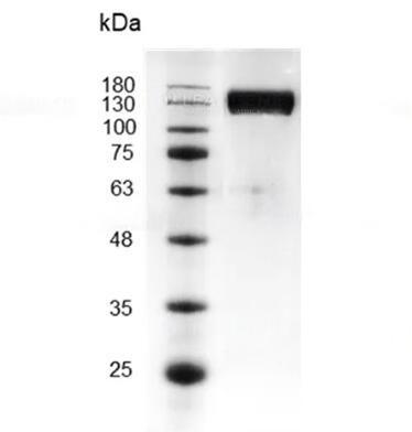 | Molecular Mass : | The protein has a calculated MW of 109.67 kDa. The protein migrates as 120-170 kDa under reducing condition (SDS-PAGE analysis). |