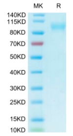| Molecular Mass : | The protein has a predicted MW of 86.5 kDa. Due to glycosylation, the protein migrates to 95-110 kDa based on Tris-Bis PAGE result. |