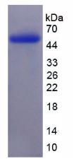 55kDa as determined by SDS-PAGE reducing conditions. |