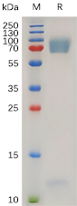 Molecular Mass : | The protein has a predicted molecular mass of 57.2 kDa after removal of the signal peptide. The apparent molecular mass of ADGRE2-His is approximately 70-100 kDa due to glycosylation. |