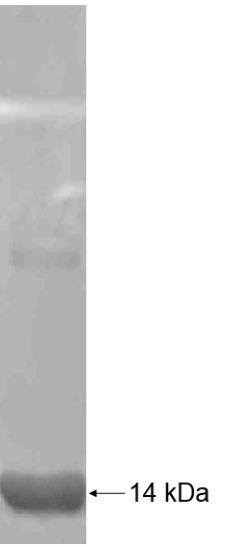 | Form : | The purified protein was Lyophilized from sterile PBS (58mM Na2HPO4,17mM NaH2PO4, 68mM NaCl, pH7.4). 5 % trehalose and 5 % mannitol are added as protectant before lyophilization. |