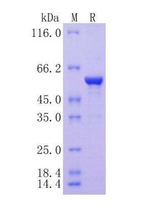 | Product Overview : | Recombinant human AHNAK protein (Q09666) (Met 483-Lys 881) with a His tag at the N-terminus and a His tag at the C-terminus was expressed in E. coli. |