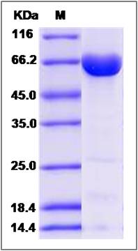 | Molecular Mass : | The secreted recombinant human ALOX15B consists of 678 amino acids and predicts a molecular mass of 76 KDa. The apparent molecular mass of the protein is approximately 62-66 KDa in SDS-PAGE under reducing conditions due to glycosylation. |