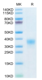 | Molecular Mass : | The protein has a predicted MW of 14.3 kDa. Due to glycosylation, the protein migrates to 30-40 kDa based on Tris-Bis PAGE result. |
