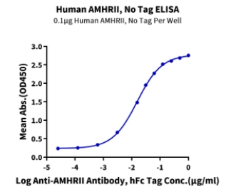 | Bio-activity : | Immobilized Human AMHRII at 1ug/ml (100ul/Well) on the plate. Dose response curve for Anti-AMHRII Antibody, hFc Tag with the EC50 of 15.6ng/ml determined by ELISA. |