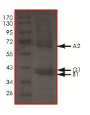 | Molecular Mass : | ~69 kDa (A2), ~38kDa (B1), and ~40kDa (G1) |