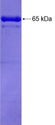 | Form : | The purified protein was lyophilized from sterile phosphate-buffered saline (PBS: 58 mM Na₂HPO₄, 17 mM NaH₂PO₄, 68 mM NaCl, pH 8.0). Prior to lyophilization, 5% (w/v) trehalose and 5% (w/v) mannitol were incorporated as cryoprotective excipients. The protein was eluted with a buffer containing 100 mM reduced glutathione (GSH). |