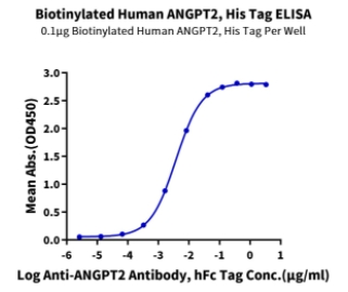 | Bio-activity : | Immobilized Biotinylated Human ANGPT2, His Tag at 1ug/ml (100ul/well) on the streptavidin precoated plate (5ug/ml). Dose response curve for Anti-ANGPT2 Antibody, hFc Tag with the EC50 of 3.8ng/ml determined by ELISA. |