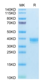 | Molecular Mass : | The protein has a predicted MW of 32.9 kDa. Due to glycosylation, the protein migrates to 35-40 kDa based on Tris-Bis PAGE result. |