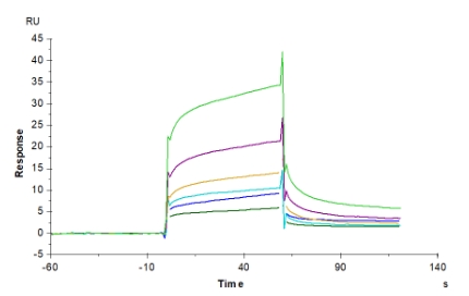| Bio-activity : | Human TREM2, hFc Tag captured on CM5 Chip via Protein A can bind Biotinylated Human APOE3, His Tag with an affinity constant of 1.41 μM as determined in SPR assay (Biacore T200). |