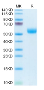 Molecular Mass : | The protein has a predicted MW of 37.4 kDa. Due to glycosylation, the protein migrates to 52-60 kDa based on Bis-Tris PAGE result. |