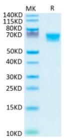 | Molecular Mass : | The protein has a predicted MW of 48.7 kDa. Due to glycosylation, the protein migrates to 70-80 kDa based on Tris-Bis PAGE result. |