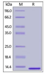 Molecular Mass : | The recombinant human B2M consists of 110 amino acids and migrates as an approximately 13.2 kDa band in SDS-PAGE under reducing conditions as predicted. |