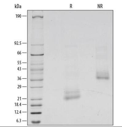 | Molecular Mass : | Predicted Molecular Mass: 13 kDa (monomer) SDS-PAGE: 19-24 kDa, reducing conditions, 35-41 kDa, non-reducing conditions |