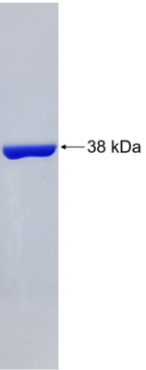 | Form : | The purified protein was lyophilized from sterile phosphate-buffered saline (PBS: 58 mM Na₂HPO₄, 17 mM NaH₂PO₄, 68 mM NaCl, pH 8.0). Prior to lyophilization, 5% (w/v) trehalose and 5% (w/v) mannitol were incorporated as cryoprotective excipients. The protein was eluted with a buffer containing 100 mM reduced glutathione (GSH). |