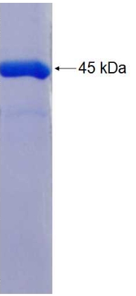 | Form : | The purified protein was lyophilized from sterile phosphate-buffered saline (PBS: 58 mM Na₂HPO₄, 17 mM NaH₂PO₄, 68 mM NaCl, pH 8.0). Prior to lyophilization, 5% (w/v) trehalose and 5% (w/v) mannitol were incorporated as cryoprotective excipients. The protein was eluted with a buffer containing 100 mM reduced glutathione (GSH). |