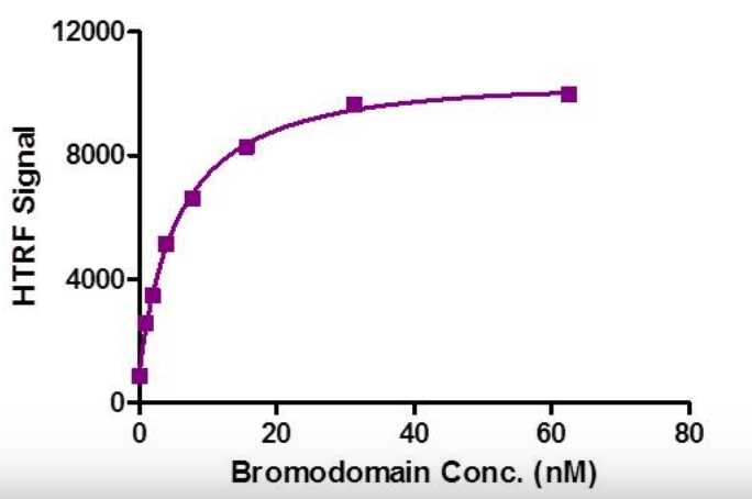 | Bio-activity : | 3 μM histone peptide H4K5/8/12/16 (4Ac) was incubated with BRD2 (71-194) protein in reaction buffer including 50mM HEPES-NaOH pH 7.0, 0.1% BSA for 1 hour at room temperature. Anti-Flag antibody was used to detect reaction products. |