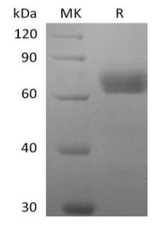 | Molecular Mass : | The recombinant Human BTN2A2 Protein has a predicted molecular mass of 51.5kDa, it migrates with an apparent molecular mass of 55-80kDa under reducing conditions. |