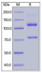 Molecular Mass : | The mature form of Complement C5 is a disulfide-linked heterodimer composed of proteolytically cleaved α and β chain. Each α and β chain has a calculated MW of 73.9 kDa (β chain) and 114.3 kDa (α chain). The protein migrates as 80 kDa (β chain) and 110 kDa (α chain) under reducing (R) condition (SDS-PAGE) due to glycosylation. |