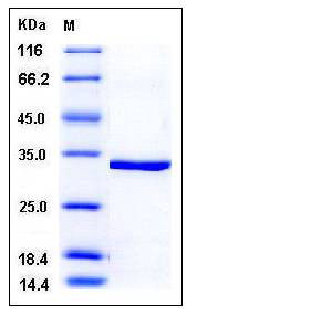 Molecular Mass : | The recombinant human CA5A consisting of 277 amino acids and has a calculated molecular mass of 31.6 kDa. It migrates as an approximately 33 kDa band in SDS-PAGE under reducing conditions. |