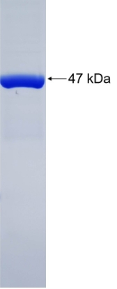 Form : | The purified protein was lyophilized from sterile phosphate-buffered saline (PBS: 58 mM Na₂HPO₄, 17 mM NaH₂PO₄, 68 mM NaCl, pH 8.0). Prior to lyophilization, 5% (w/v) trehalose and 5% (w/v) mannitol were incorporated as cryoprotective excipients. The protein was eluted with a buffer containing 100 mM reduced glutathione (GSH). |